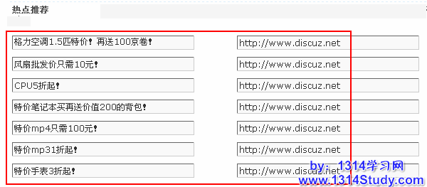 显示在页面左侧的位置,这里只要填写热门商家的编号就可以,编号之间用英文逗号(,)分隔。系统根据您填写的编号顺序在前台显示。