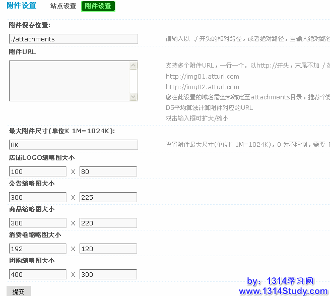 管理员可在站点设置中设置品牌空间的附件信息,可在此设置附件存放的URL,附件最大尺寸和缩略图尺寸。下面主要介绍一下这个功能的使用方法和注意事项。