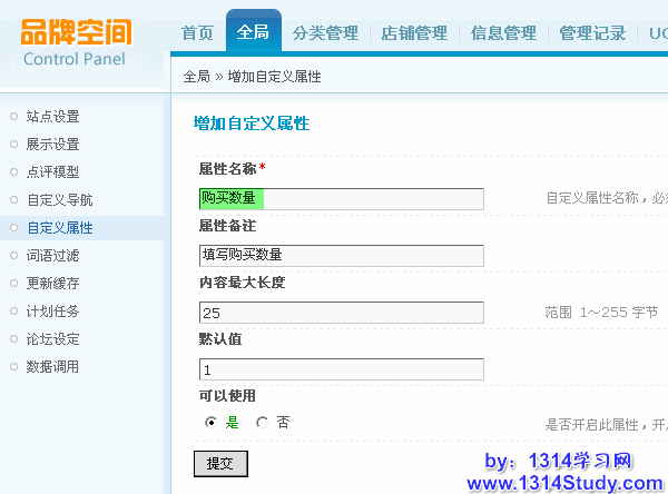 属性名称:为必填项目,如购买数量,这里可以按照自己的站点情况具体填写。