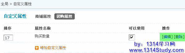 添加好以后,如果要编辑或者删除,可以直接在团购属性中进行操作,如下图所示: