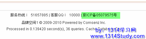 页面底部可以显示 ICP 备案信息,如果网站已备案,在此输入您的授权码,它将显示在页面底部,效果如下图所示: