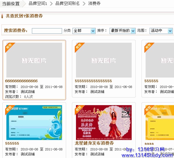 热门消费券页面,每页显示消费券数目,默认为每页显示9个,多于9个分页显示。