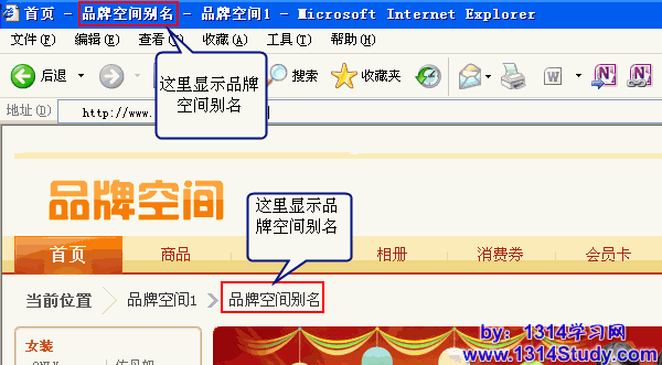 站点的别名,将显示在导航条和标题中,效果如下图所示:
