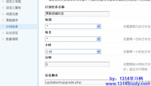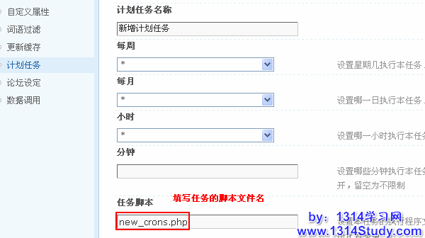 3、填写上已上传到 ./source/include/cron/ 中脚本的文件名,提交。