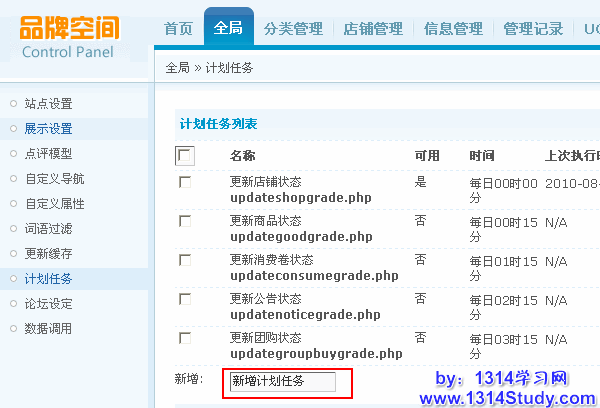 2、后台 => 全局 => 计划任务 “新增:”后填写计划任务名,如下图所示: