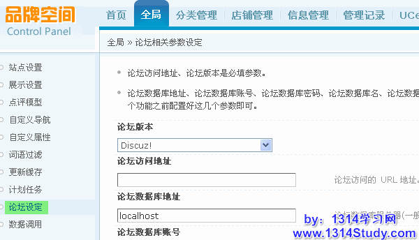 论坛相关参数的设置,论坛数据库地址、论坛数据库账号、论坛数据库密码、论坛数据库名、论坛数据库表前缀这几个参数是选填项目。当您使用“从论坛导入图片”这个功能之前配置好这几个参数即可。