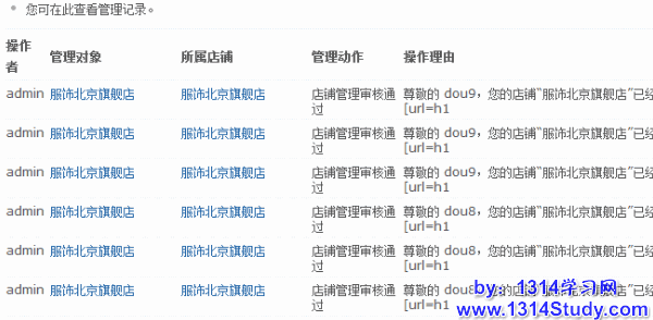管理记录里主要记录了管理员的一系列操作,方便站长了解站点的运行情况。如店铺通过审核等。