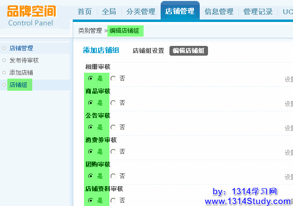 当管理员在后台,店铺组里开启所有审核后,申请店铺、发布商品、发布公告、发布消费券、发布团购信息都需要通过管理员审核通过才可以显示。