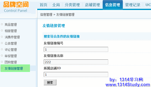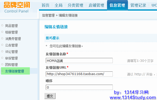 管理位置:管理中心 => 信息管理 => 友情链接管理