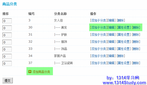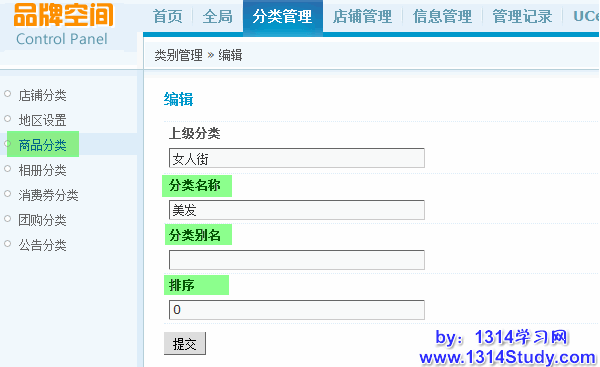 管理中心 => 分类管理 => 商品分类