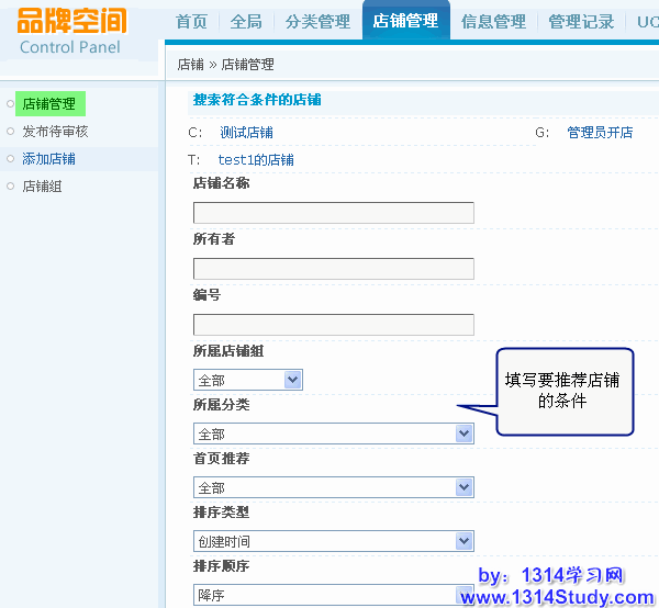 登录品牌空间管理后台 => 店铺管理