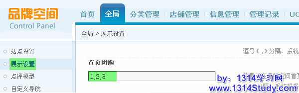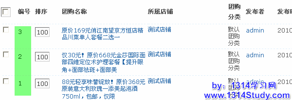 如上图所示,这里填写团购的编号,使用英文逗号(,)分隔。系统根据您填写的编号顺序在前台显示。