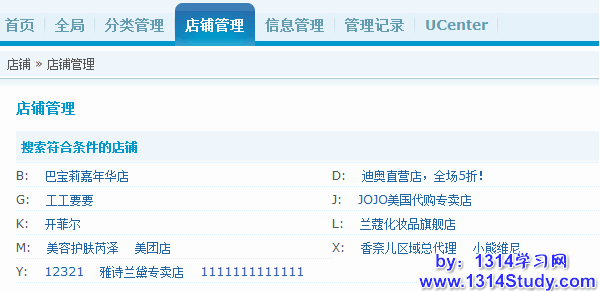 一种是以店铺名称的拼音为索引