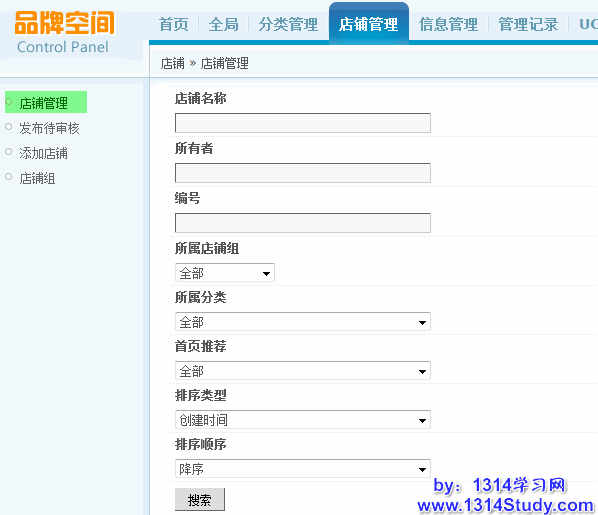 一种是可以通过店铺名称、所有者、编号、所属店铺组、所属分类等条件对店铺进行搜索。