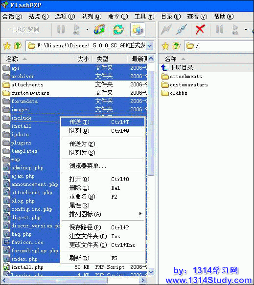 再将 config.inc.php 文件下载到本地,以方便对新的 Discuz!5.0 的 config.inc.php 进行对照配置。