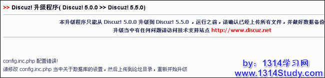 解决办法:上传 Discuz!5.5 安装包中的 config.inc.php 文件到论坛根目录(请一定使用二机制方式上传文件)。