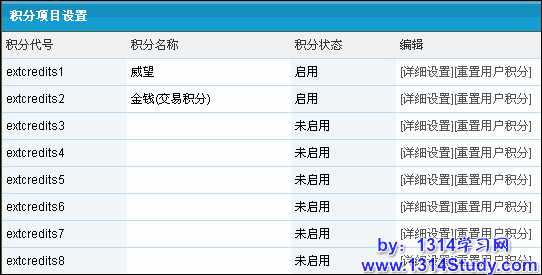 它其实列出的就是你在基本设置 -> 积分设置里开启的单项积分,点到每个积分的详细设置,如图 3 所示: