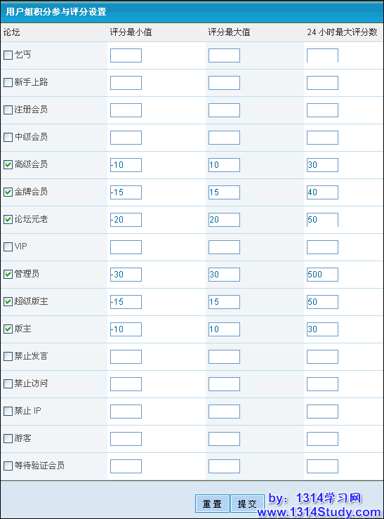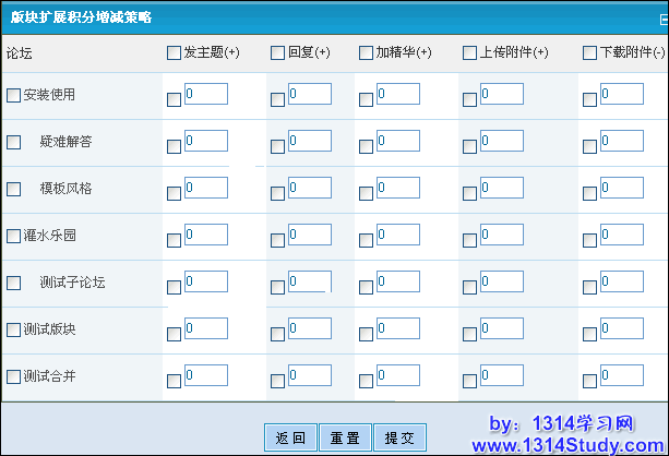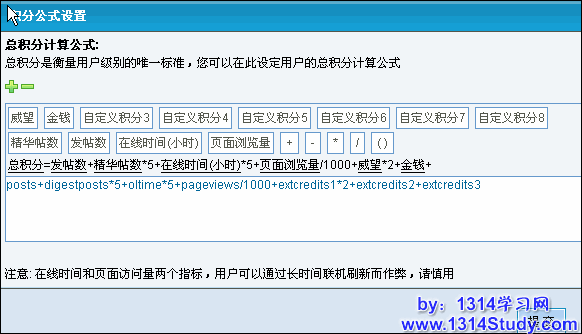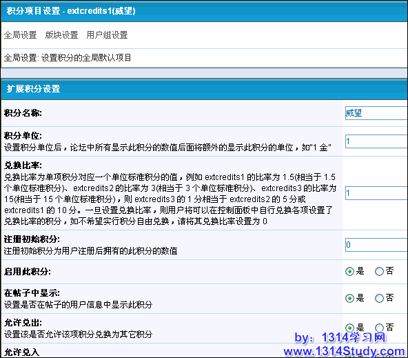 下面分别讲解一下每一项设置都提取了哪些内容。由于这些内容只是从论坛里的每一处积分设置里提取出来的,具体的每一项功能里面的细节在这里就不做详细叙述了。