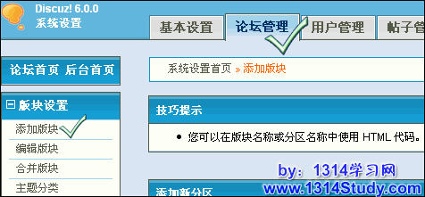 (1)填写版块名称:填写你要新添加的版块名称;