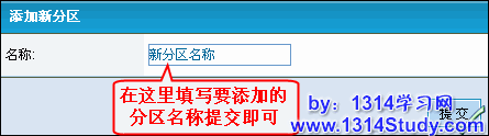 填写好要添加的新分区的名称“提交”即可,如图 3 所示: