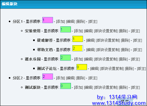 其中有三个模块:添加新分区、添加新版块、添加子版块。