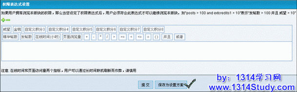 如图 2 所示,每个版块设置的最后可以将你设置的保存为论坛方案,以便其他的同类设置的版块使用。