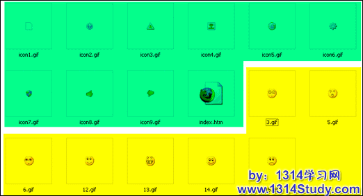 一、打开./images/icons文件夹,将您准备好的主题图标复制到这个文件夹里。如下图所示,注意:绿色部分是论坛自带的主题图标,黄色部分是自定义的图标。