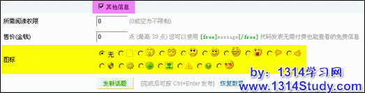 四、使用主题图标。发新帖时,勾选“其他信息”,如下图粉色部分。然后在下图黄色部分选择主题图标。