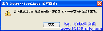 如果出现如图 2 所示的错误提示,则说明 FTP 帐号密码填写有错误,请确认后正确填写并提交后重新检测直到完全正确;