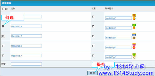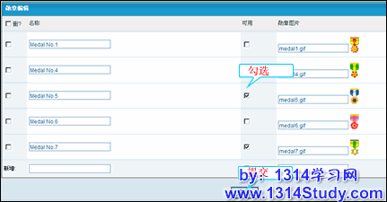 首先要确定勋章编辑页面有可用的勋章,即有勋章相应的“可用”复选框被选中