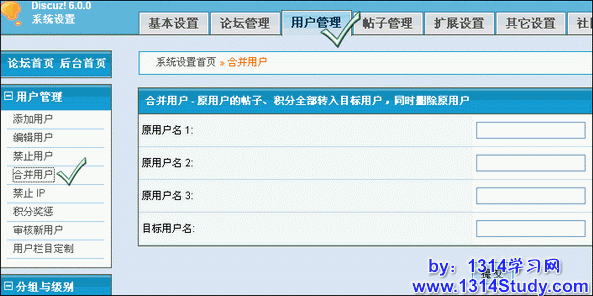 以上就是Discuz!合并用户的操作和合并后的变化的详细说明。