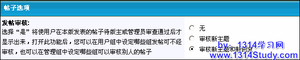 审核新主题:用户在该版块发表的新主题需要通过审核才可以显示