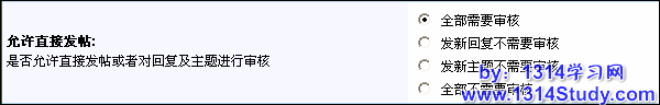 系统默认全部需要审核,即发表新主题和新回复都需要通过审核,您也可以修改为其他选项,然后点击下面的提交完成设置。
