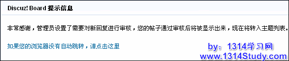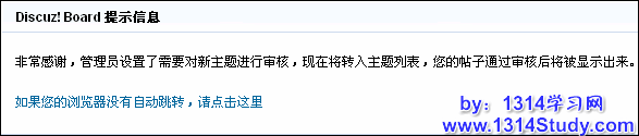 按照说明设置好后,会员发表新帖后将会出现提示信息,如图 5 和图 6 所示:
