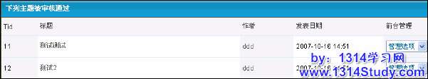 管理员登录后台,帖子管理,审核新主题,即可看到图 7 所示: