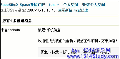 2.当用户登录论坛后,会收到刚才发送的短信息,如图 3 所示: