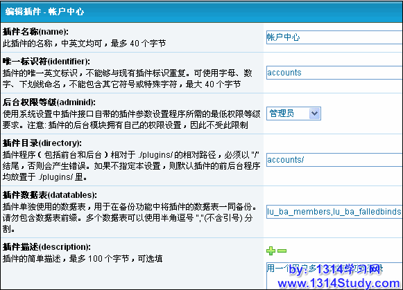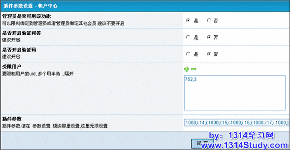 模块:参数设置 的效果,如图 15 所示:(访问地址:admincp.php?action=plugins&identifier=accounts&mod=setting)