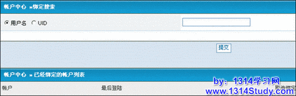 那么 模块:绑定搜索 的效果,如图 12 所示:(访问的地址:admincp.php?action=plugins&identifier=accounts&mod=stats)
