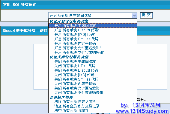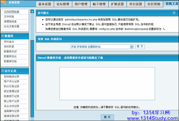 要使用这个功能必须将 config.inc.php 当中的 $admincp[runquery] 设置修改为 1才可以。