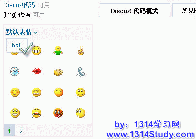 进入发布新帖界面,在 smilies 表情的“默认表情”那里选择“ball”,如图 13 所示: