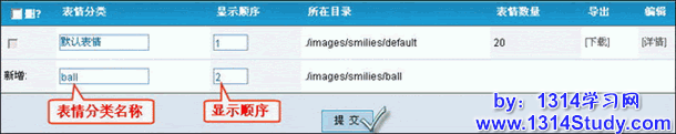 下面我们添加表情分类和显示顺序然后提交,如图 4 所示: