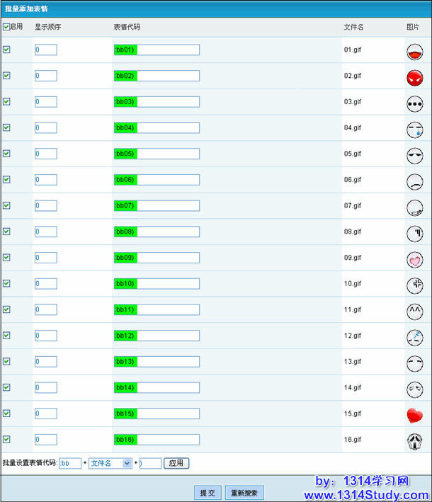 如果添加的表情比较多的话,为每个表情设置表情代码将是一件很琐碎的事情,下面这个小功能可以为您解忧。