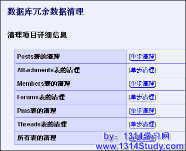 对您的数据进行有效性检查,删除冗余数据信息。如图 11 所示:您可以选择“单步情理”某个表或者“全部清理”所有表。