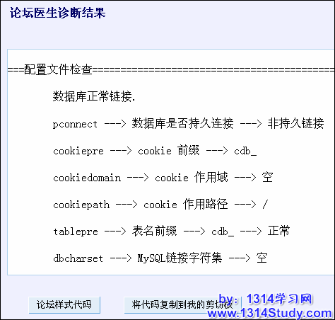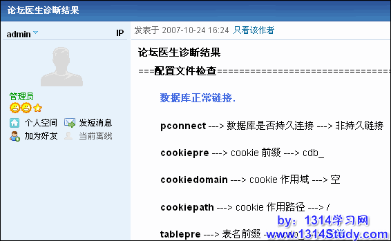 自动检查您的论坛配置文件情况,系统环境信息以及错误报告。检查结果如图 4 所示: