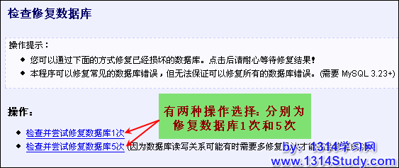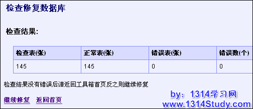 注意:本程序可以修复常见的数据库错误,但无法保证可以修复所有的数据库错误。(需要 MySQL 3.23 以上版本)