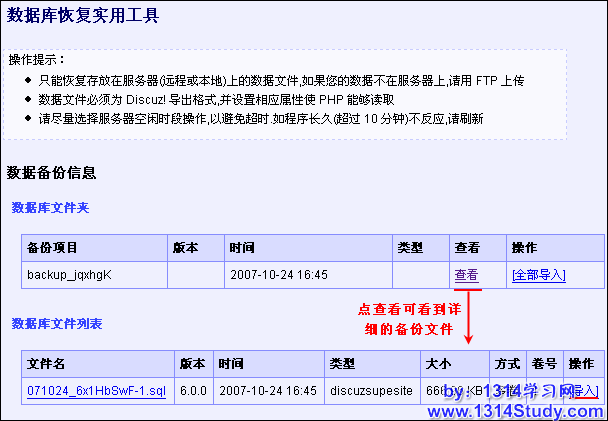 点击右下角的“导入”即可将该备份文件恢复到当前论坛。