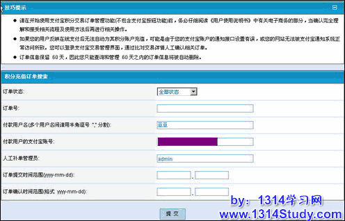 DZ系统设置-----扩展设置-----电子商务-----积分充值订单。 在此查看站点会员的积分买卖记录。