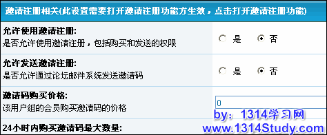 2)允许发送邀请注册:是否允许通过论坛邮件系统发送邀请码。