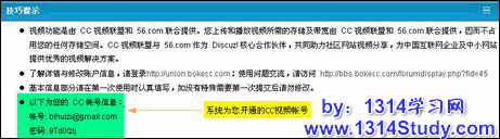 注:开启视频功能后,系统会直接给您开通CC视频的帐号,如下图: