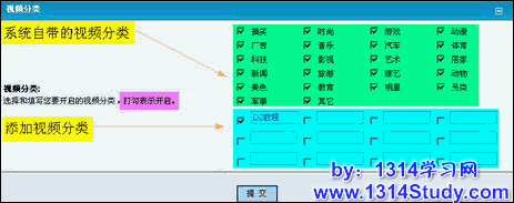 开启视频功能之后,请在“视频分类”里设置您站点的视频类型,如下图: